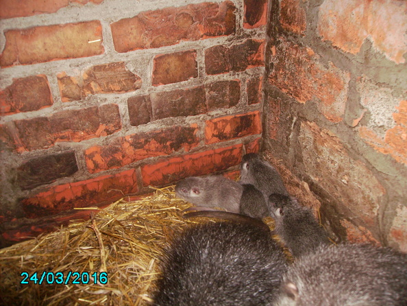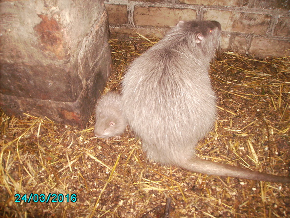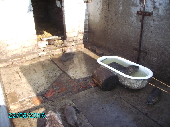 Сегодня помыл выгулы и побаловал нутрят купанием. Малыши впервые воду увидели. Одно самое шустрое, быстро нашло как в ванночку попасть