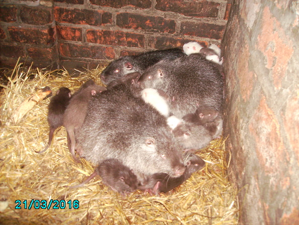 нашел еще одного порваного в подстилке... но покрупнее, наверное с первых выводков. У третьей нутрята как мышки, маленькие