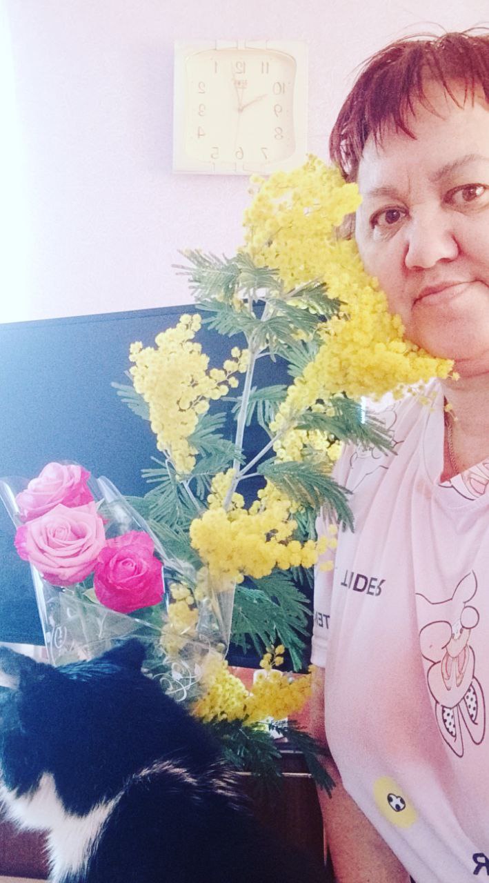наш так и дует ещё, но уже потише. Сушит земельку, снег тает, на улке потеплело, градус на котле убавили)) Сегодня получили цветы и подарки от мужчин) Глава нашего поселения получил повышение, теперь он глава района, а у нас временное безвластие)