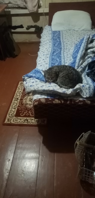 Вот и день прошел. Немного позанималась зарядкой.. Вечером вышла кис кискать кота, с чердака спрыгнул. Потом хвостиком за мной ходил, благодарный. На руки лезет к Д и ко мне тоже только так.. Сейчас спит рядышком, довольный..А так То в сарае, то на чердаке по ночам .. Иногда всё же бегает домой, наверное, на недолго, три шага добежать, но потом обратно заявляется. Сосед наверное знает, что он у нас тусуется.. Раз не встречает, еду не вымогает, не орет..)))