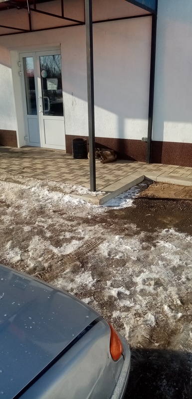 В районе, заехали за мясом. Возле магазина три щенка и две собаки постарше. Одна типа лайка, хаски, вторая рыжая, лисья дворняжки. Щенки как алабайчики, симпатяшные, крупные. Все очень ласковые, щенки правда, два штуки чуть недоверчивые, но не кусаются, просто побаиваются немного.. Всех погладила, такие ласковые.