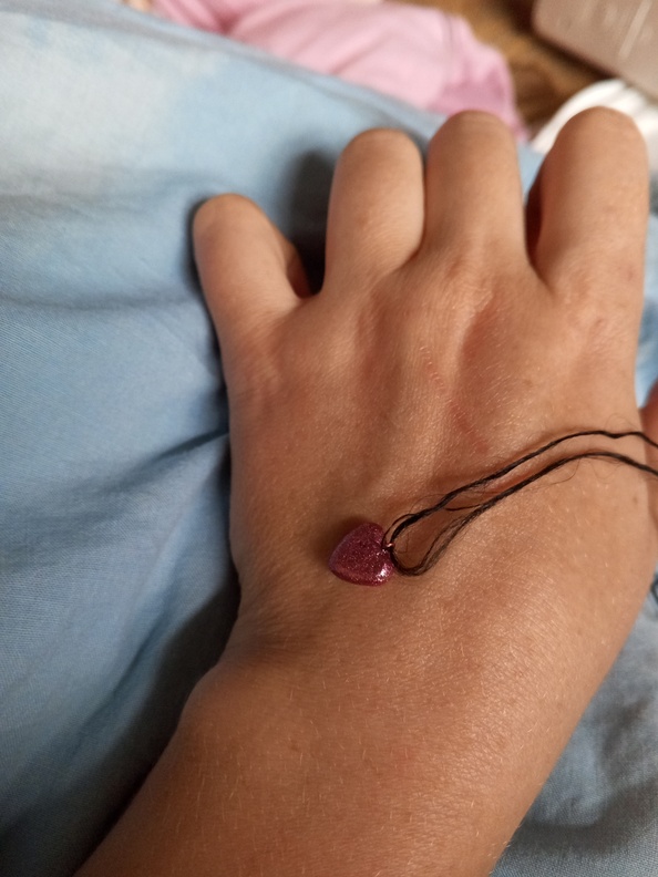 У нас всё хорошо. Вот такое сердечко Дима сделал из хлеба.. Высушил, покрасил моим лаком и подарил))
