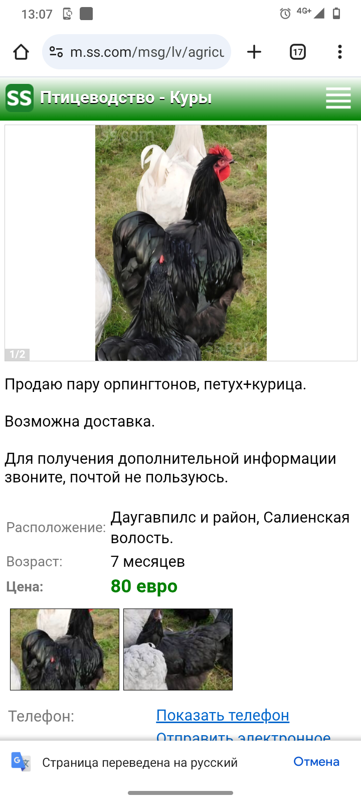Позвонила. Там у нее все помесы. Есть павловские, голошейка, оргпинтоны. Но все не чистокровные. Недорого. По 10 евро.