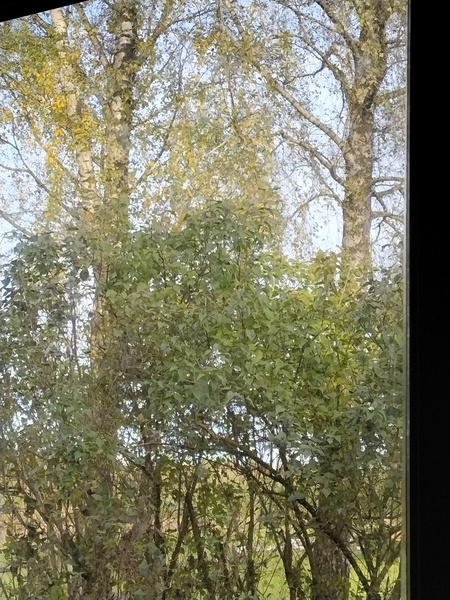 А у нас вчера дождь с ветром. Листья только летали по воздуху. Но березка в окне ещё немного листочков осталось. Ветер проказник. Было красивей.