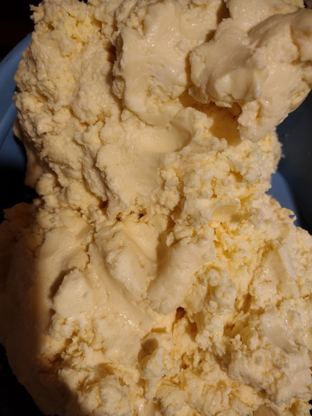 Сметана у нас тоже такими кусками, хоть руками с ведер выковыривай. Маслобойка без воды отказывается такую сметану сбивать. У нас Меласти, она не очень мощная.