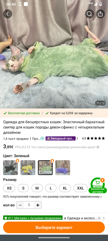 Люда, я своим сфинксам шью одежду. Пробовала и вязать для разнообразия - не оценили))