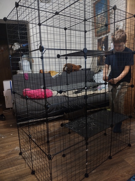 Клетка жидкая под мейкунов, но под котят хорошо. И ее можно по разному собрать. Модифицируется в любые направления. Никогда никого не закрывала. Но полукровки это нечто. Надо учить пользоваться лотками. Иначе кому они будут нужны.