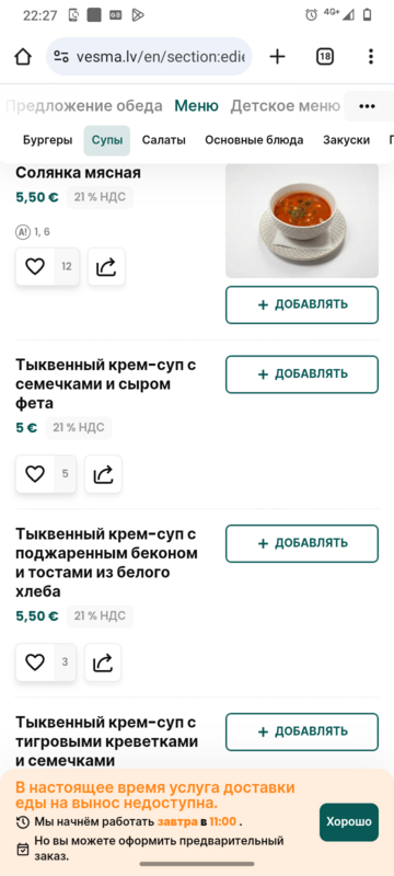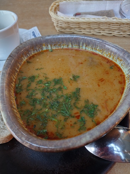 Я у них очень любл солянку. Ее не было люблю супы пюре для попробовать разное. А тут суп рисовый. Суп вот этот. Ну фу бе. Видимо бригада поваров другая. Девушка на кассе так и сказала, что у них много поваров и разные смены.