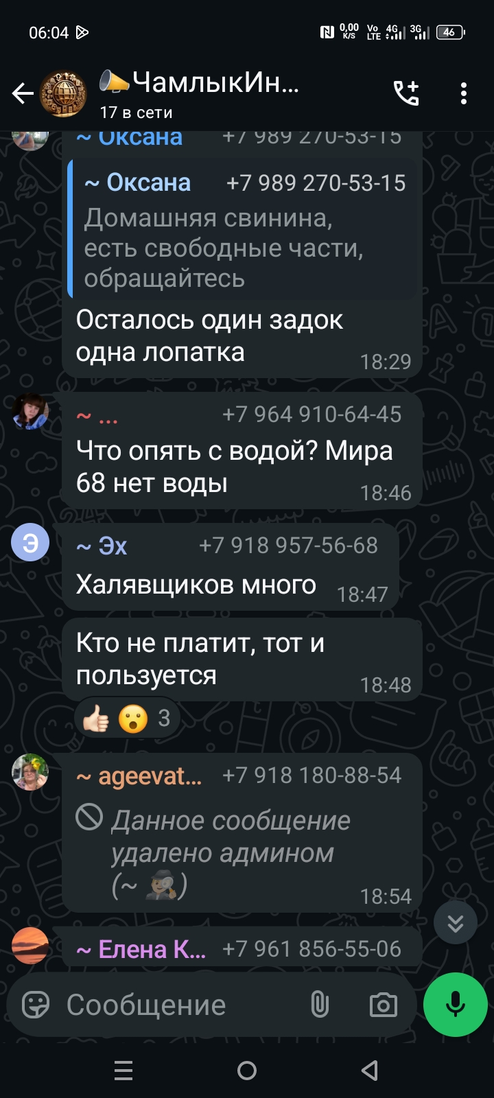 Админ ватсап группы нещадно трет посты народа разъяренного таким водным беспределом.