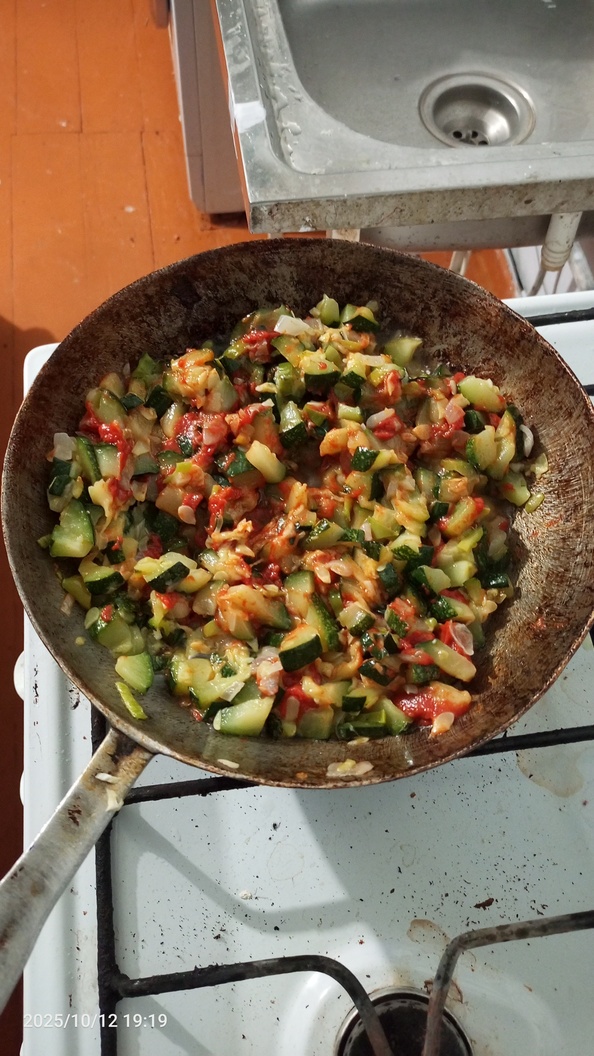 Сорвал видимо последние в этом сезоне пару кабачков и потушил один из них.