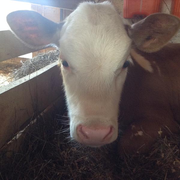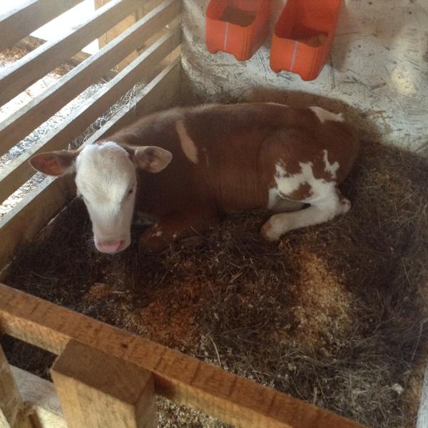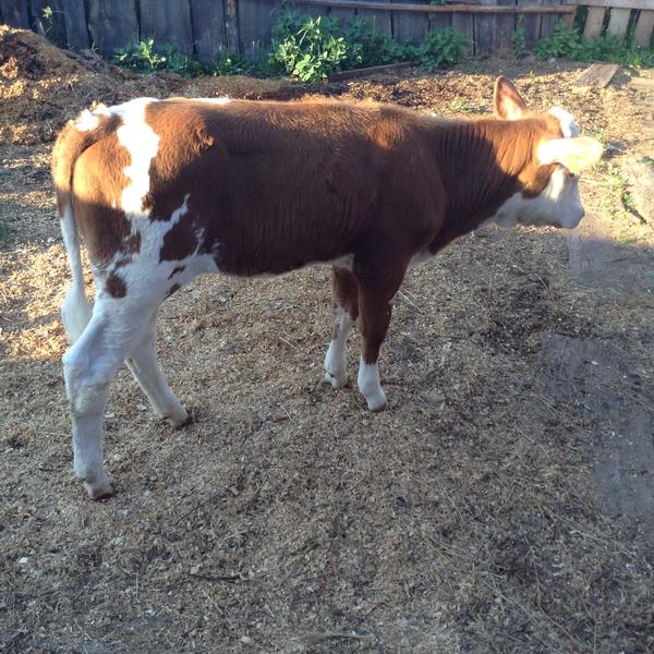 Верба плачет, просится гулять . Ведёт перекличку с соседними телятами . Коровы далеко от домов не уходят без телят . Ветеринар обещала в течении получаса быть у нас . Ждём .