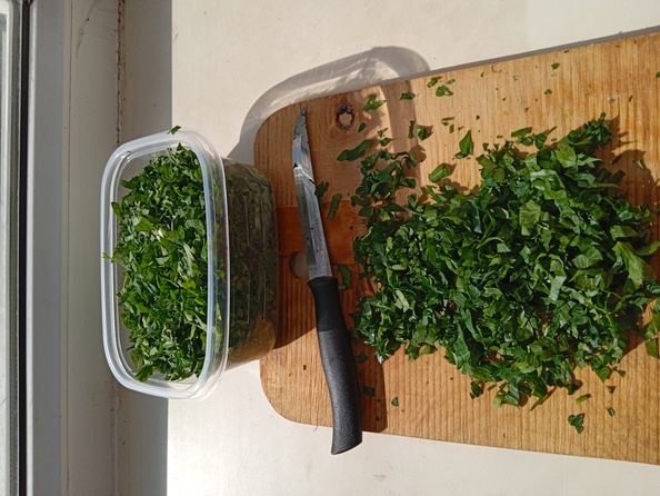 Всем привет. Поменяла телефон потерялся пароль от сайта. На днях выкопали картоху. Вышло 73 ведра было опущено в погреб. Собрала пакет петрушки. Покрошила разложила в парцеонки на заморозку. Ну и остаток разложила в пакетики.