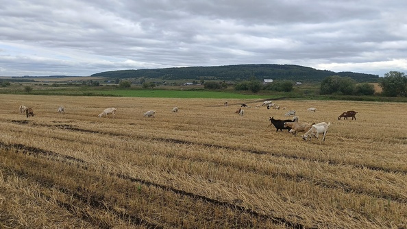 Поле убрали и не пашуть. Ячмень нынче низкий, не весь дорос до комбайна, а также осыпалась часть или при уборке. И зерно и новые всходы зерновые, так что отьедаемся на поле.