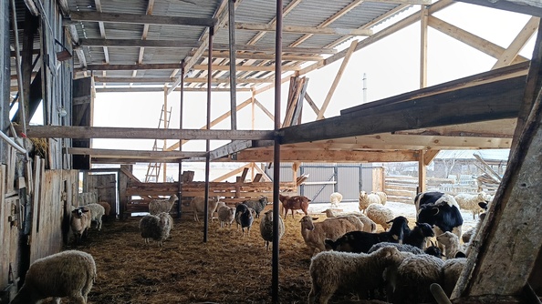 Коровник в процессе переделки, все стоят вместе во дворе, душа болит - зерном кормить никак невозможно потому как коровы подавят коз овец. Так что как раз будем посмотреть как мы родим без зерна и как будем наращивать удои и мясо. За овец и взрослых коз практически спокойна а вот за молодежь полугодовалую покрытую беспокойство. На одном сене самим расти и плод растить(.