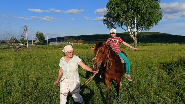 ,но мы с ней разговариваем и она успокаивается. Сын иногда лежит у нее на спине, греется зимой на солнышке вместе с ней. Ночью может приехать на ней без уздечки. Она очень добрая, смотрит так сочувственно когда курицы овес у нее клюют и никогда никого не тронет. А еще лошадь это большое солнце, которое всегда у твоего крыльца, лечебное. После 10 минутного прохаживания на лошади верхом приходит ощущение просто счастья на весь оставшийся день. А еще ей можно все рассказать