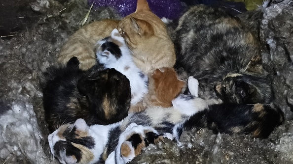 За день случилось 6 родов. Седьмая не успела, сегодня только будет. А там не знаю. Надо все таки помыть чистенько ручки и проверить всех остальных на предмет беременностм и родовой деятельности. А то практика показала что рожают очень быстро, на улице в соломе с быками и кошками это может привезти к потерям. Да и не очень тепло.