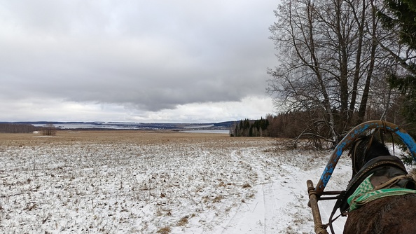 Не знаю можно ли назвать это заездкой или нет, вот второй раз Коля сел на коня. Он на него садился периодически, но было ничего не понятно, конь в недоумении таком ленивом пребывал, типа что за фигня. И стоял на месте. Сдвинуть с места было делом не простым), как то раз летом все таки прошлись длину огорода и ко мне, ну и все. И вот решили проверить как он будет удила слушать или нет. Поехали в лес, я в санях на Лизе, Коля верхом на Кузе.