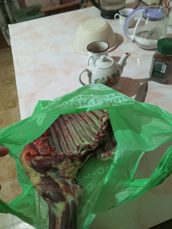 Да, это сосед угостил, двумя ляхами козла. Забивал и вау, мы в первый раз попробовали такое мясо. Оно жестковатое оказалось, перекрутили на фарш. Половину уже сьели) Но затарена морозилка ещё салом и мясом, хорошо))) Хорошо держать своё хозяйство, всё таки, как ни крути.. Это я про вас, кто его держит) Такое мяско кушать отлично прямо))