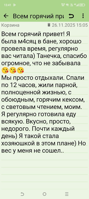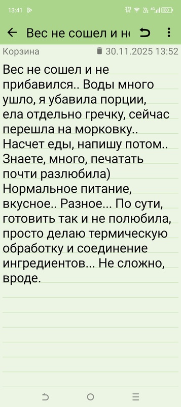 Сегодня у меня разгрузочный день. Я варила себе кашу на утро, делала салат из свеклы, моркови и селедки. Хочу немного со следующей недели построже соблюдать систему, чтобы к Новому году перейти на 79+.