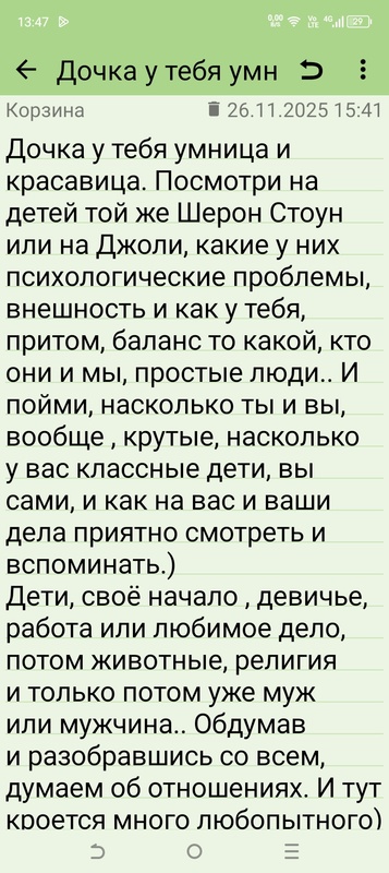 Вроде же всё ровно было, я даже порадовалась..Ну и Бог с ней, не расстраивайся, она не права и это её совсем не красит, такое писать..