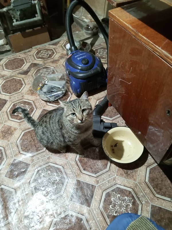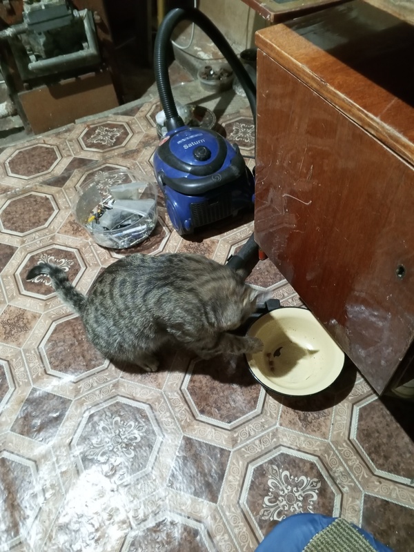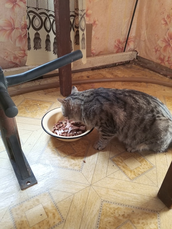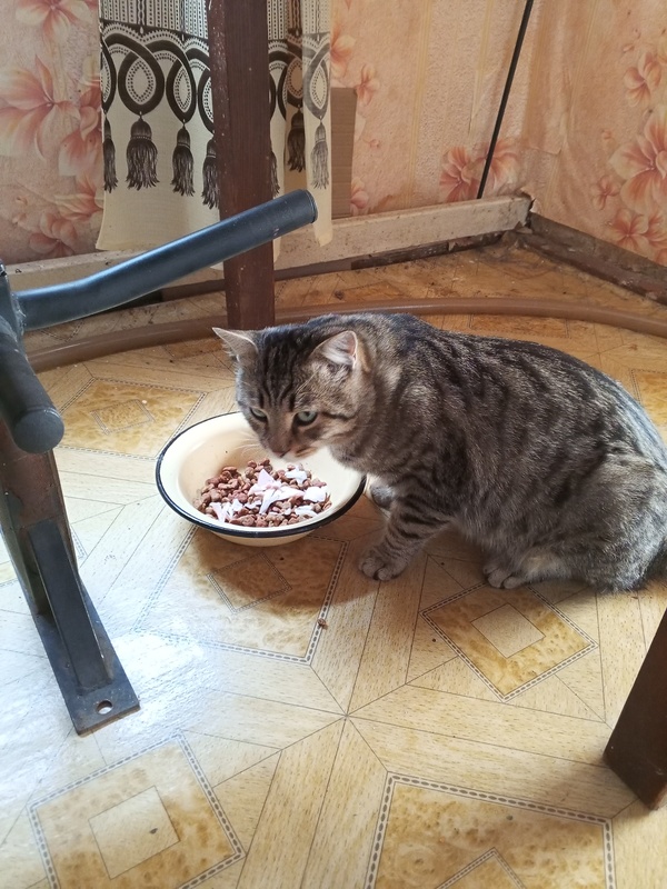 Снова пришел, уминает еду за оба уха и мурчит) - ваш я, ваш)))) кормите мол, )))