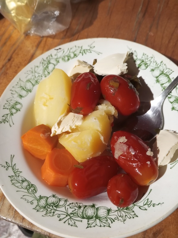 Днем правда, чуть лапшички на бульоне, пара ложек и горсть сухариков к чаю.. Но зато вечером))
