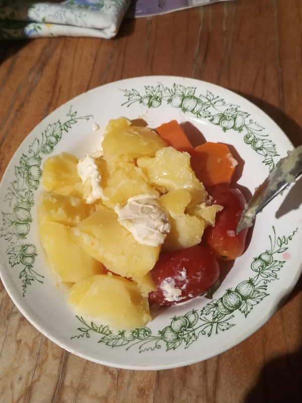 Отдыхаем вроде.. Делаю Диме мясную с картошкой снова жаркое.. Сама может кусочек сьем, а так посмотрела - из каши у меня только овсянка.. Что ж, можно и её приготовить себе.. Просто картошки отварю.. Если без хлеба и вареную, то не долбанет по весу..