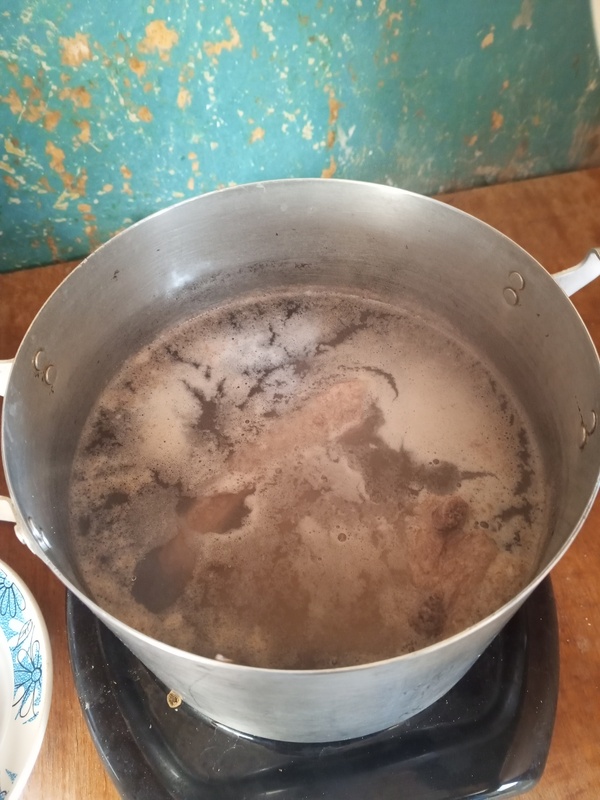 Сначала отвариваем ребрышки свиные и хорошо убираем накипь. Потом мясо вынуть и всё остальное.