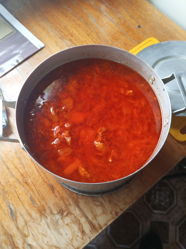 Борщ готов.. Теперь можно не думать, что будет есть Дима и спокойно уделить время световому чтению. Сама перебьюсь чем то более пост5ым. Немножко сь4м, чисто для вида, а так надо себе сготовить . У меня острое желание победить лишний вес.