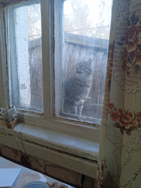 Видимо, проголодался, пришел))) Научили его в окна вызывать людей, себя показывать)))