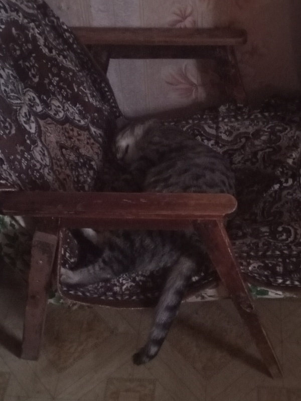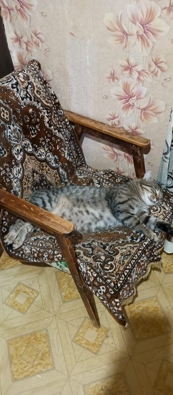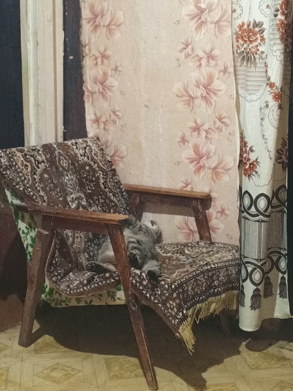 Сделали коту отдельное , спальное кресло)) Сегодня ложила раза три, гладила, приучала) Я на стуле, кот на кресле)) Не, ну а че, всё правильно, закономерно)))