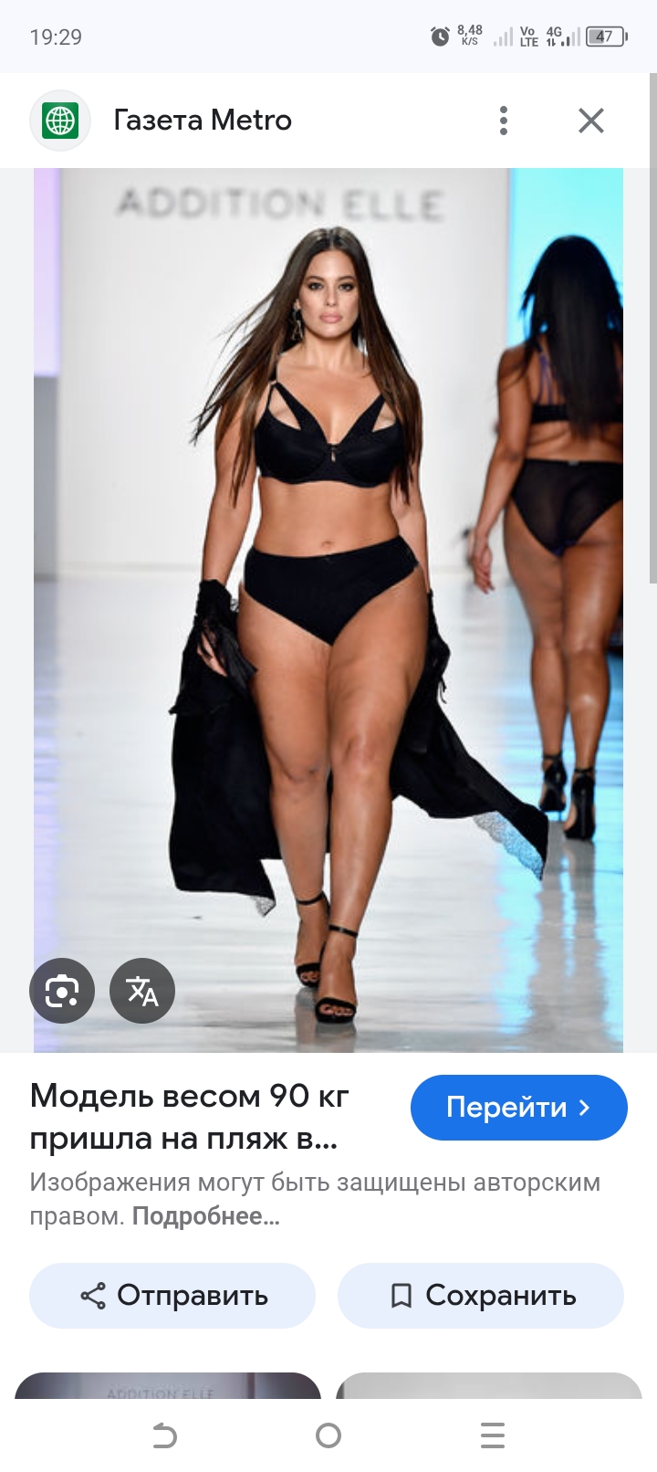Ну да, согласна, но всеровно, эти безобразные фото, могут стать реальностью. Не лишним будет и посмотреть, на своё возможное будущее.. А так выглядят женщины с Таниными 90 кг.. Модели.. Они правда на спорте..И по росту, незнаю, ну модели как правило высокие.. Без фитнеса, лишний вес вообще безобразно заплывает фигуру.. Пусть сама смотрит и не винит ни кого.