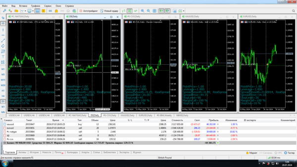 Первый вариант на платформе Mt4 с плечом 1 к 100.