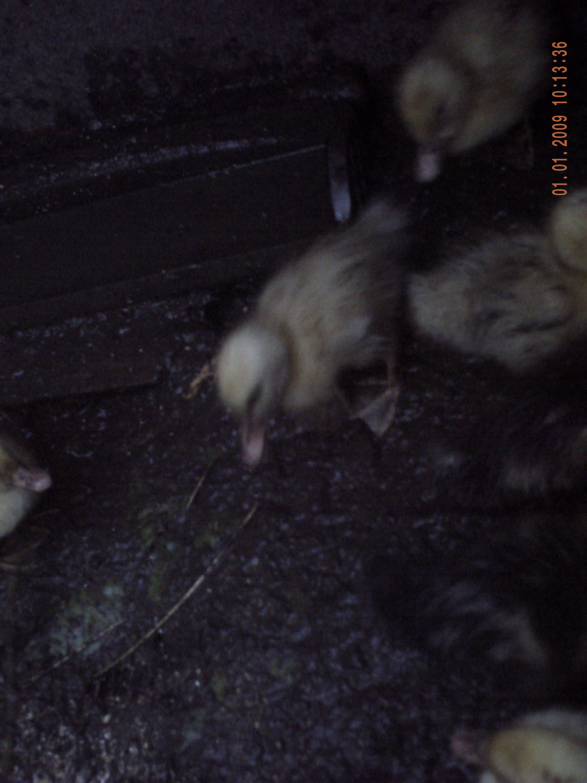 Но завтра спонтанно прикупила еще 10 суточных уточек - 5 желтеньких и 5 черненьких.Посадила их к уткам и куроуткам. Зря - обижают малышей. И опять пристройка к журнальному столику, а для домика оставила оставила им переноску для кота, вместо кормушки чашки петри, а вместо поилки полочка с дрерцы холодильника (тоже уже не нужного). Утром покормила и поехала в город, приехала и начала кормить - смотрю что-то не так. Сидят 3 желтых и 5 черных. Обыскала все - нет. В загоне им спрятаться не где, дырок и щелей под моей баррикадой нет. Обошла кругом тоже нигде нет. Сорока унести не могла, т.к. зановеска держится на гвоздиках и она на месте. На следующее утро кормлю своих птах, а собаки вдруг лай подняли и стоят на месте. Подошла к ним - в траве сидит один из пропаж. Самое интересное, что я там вчера смотрела.Глазки закисшие, весь скукоженный. Посадила к малышам и первое что сделал побежал пить воду. К вечеру очухался. Первые дни они к переноске и не подходили боялись. А потом освоились, они там ночью спали. И тут-то была совершена мною не поправимая ошибка. Я их на ночь не забирала. Ночью проснулась от дождя, выскочила, накрыла всех пленкой, а малышей решила забрать домой. В переноске оказалось только половина и ..... мертвых. Воды не было, а они все мокренькие. Выскочила на улицу с фонарем.... остальные тоже самое, только они до домика не добрались и воды и луж нет - просто мокрая земля. Просто утонули. До сих пор не могу себе этого простить. Вот они мои лапули