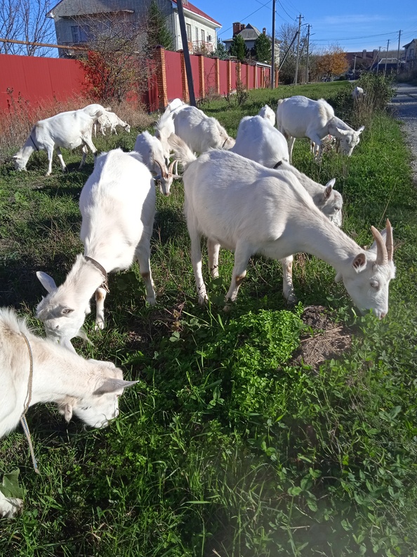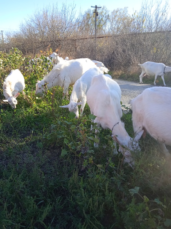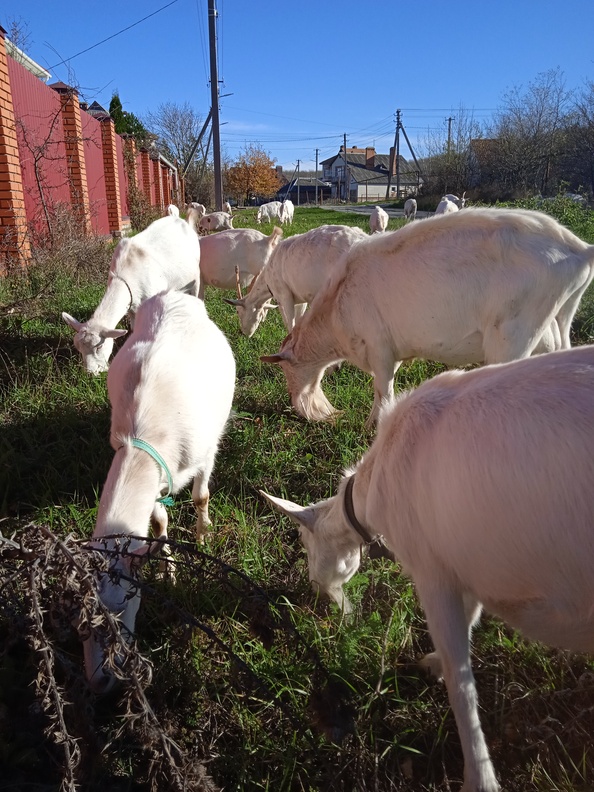 Здравствуйте. Ну вот и ноябрь на дворе. Ночью 5-6 градусов, а днём до 15 ти. Но мы не унываем, ещё пасемся. Лист опал с деревьев и дождь немного попортил их. Зато травы много зелёной. Это и радует. Гуляем, козы едят зелёную травку, всё отлично. Козы котные, окот в январе.