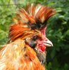 1899 -Шлемообразный хохол у петуха узок и по бокам сдавлен; он наклонен вперед и приподнят простираясь за клюв, но, не упираясь на него и не мешая зрению. Каждое перо завито в виде шлема(фото 1).