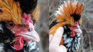 Хохол у кур довольно большой, в подборе т. е. имеет направление от затылка вперед; у петуха он меньше, строение хохла ШЛЕМООБРАЗНОЕ, хохол приподнят и на глаза не опускается.