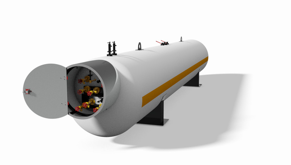 Резервуары объемом от 5 до 200 м3. Могут оснащаться компрессорными блоками, и необходимой предохранительной и запорной арматурой.