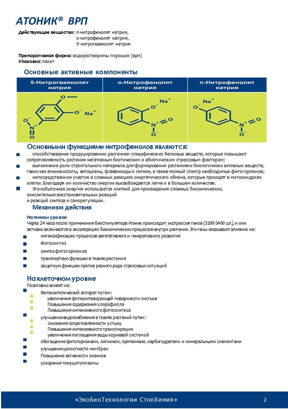 АТОНИК ВРП представляет собой смесь натрия 5-нитрогуаколата, натрия о-нитрофенолата и натрия п-нитрофенолата с соотношением 1:2:3.