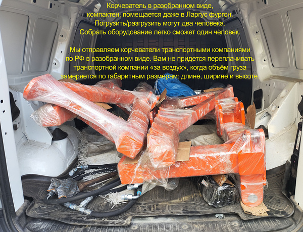 В комплект поставки входят три пальца для монтажа корчевателя на заднюю трехточечную навеску трактора (нижние пальцы диаметром 28 мм и верхний палец диаметром 25 мм) и два гидроцилиндра с рукавами высокого давления для подключения к гидросистеме трактора.