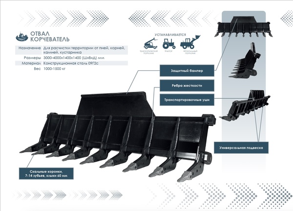 Корчеватель-отвал 3000 и 4000 мм навесной на трактор и погрузчик