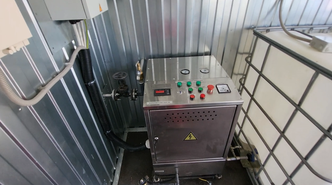 Пар, из парового генератора, подается в герменично закрытый объем запарника.