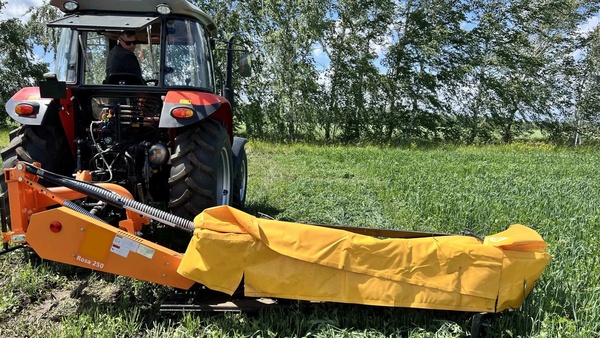 Косилка Rosa 250 работает с тракторами от 75 л.с. Может работать в комплексе с трактором МТЗ-82.1. В комплекте обгонная муфта.