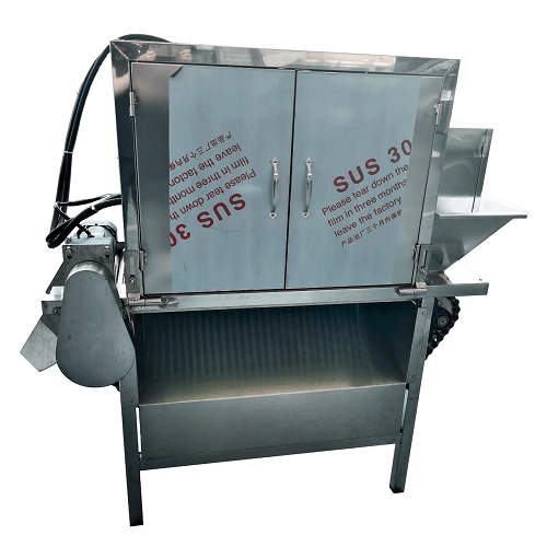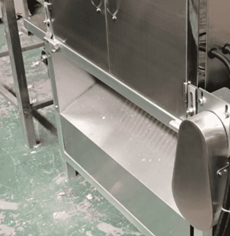 - имеется возможность регулировать скорость движения транспортера для равномерной подачи продукта в камеру очистки;