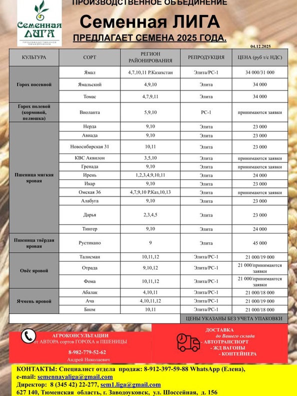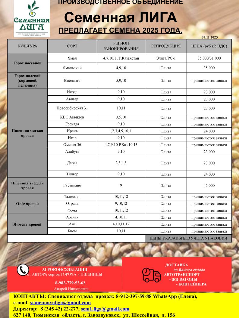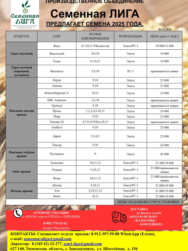 Производственное Объединение "Семенная ЛИГА" E-mail: semennayaliga@gmail.com сот.: 8-912-397-59-88 WhatsApp (Елена)