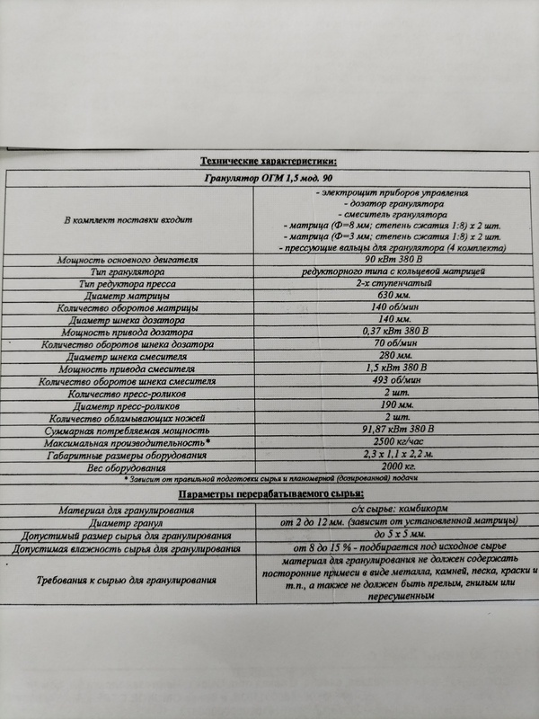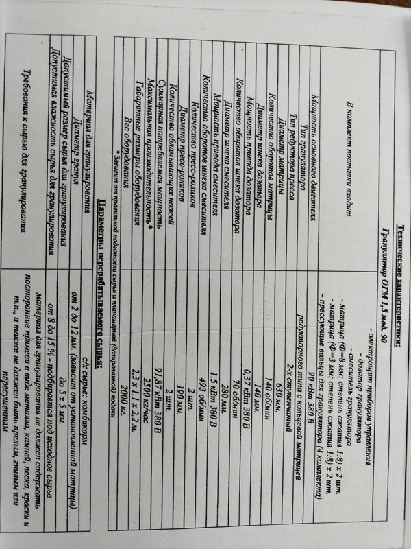 Диаметр гранул от 2 до 12 мм (зависит от установленной матрицы)