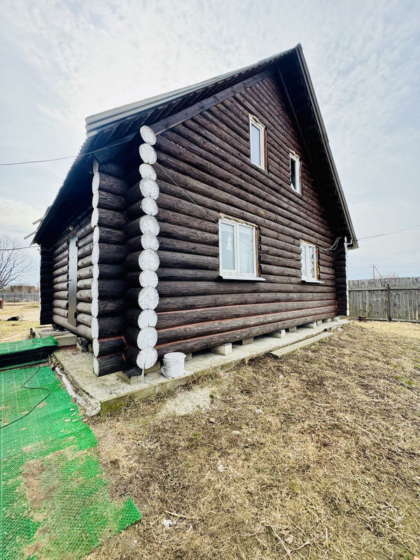 • Коммуникации: на участке ИЖС 26 соток построен жилой дом из бревна, подведена вода из артезианской скважины глубиной 38 м. Отопление печное.