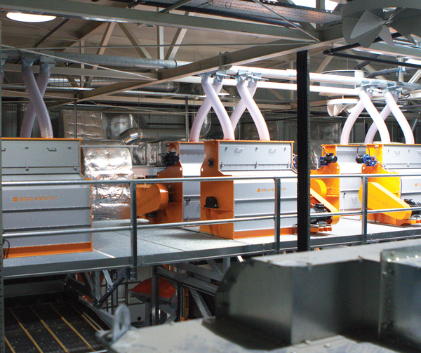Зернорушки Elica оснащены усовершенствованной системой подачи материала, которая равномерно распределяет зерно по всей поверхности рабочей зоны за счет точной настройки скорости подающего механизма. Это позволяет получать готовый продукт высшего качества за один проход, исключая необходимость дополнительной обработки.