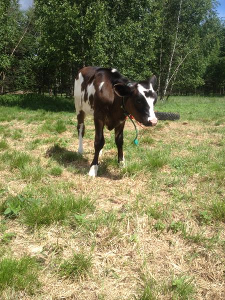Телка породы швиц, мать чистокровный швиц отец искусственный. Возраст 4 месяца. Только на племя. Очень крупная, по сей день кормится молоком и кашей. Мать удои 35 летом, зимой 32 л.