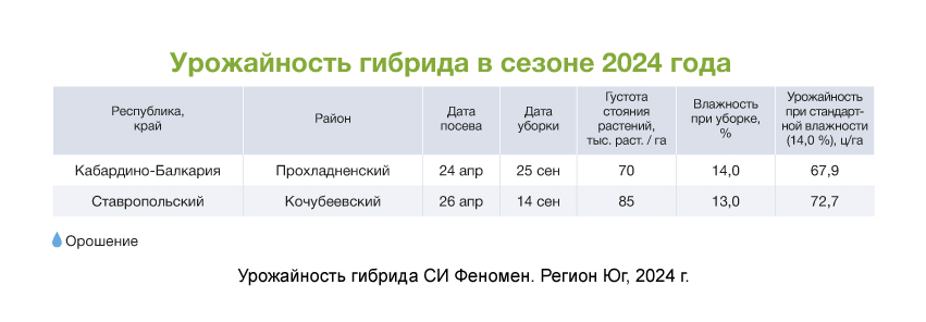 Благодаря синхронизации обеспечивается улучшенная озернённость — заполненность зернами верхушки початка: независимо от условий выращивания в нем формируется 16–20 рядов с 30–40 зернами в каждом. А тонкий стержень початка, достаточно рыхлая обертка и зубовидная форма зерна способствуют быстрой влагоотдаче в предуборочный период.